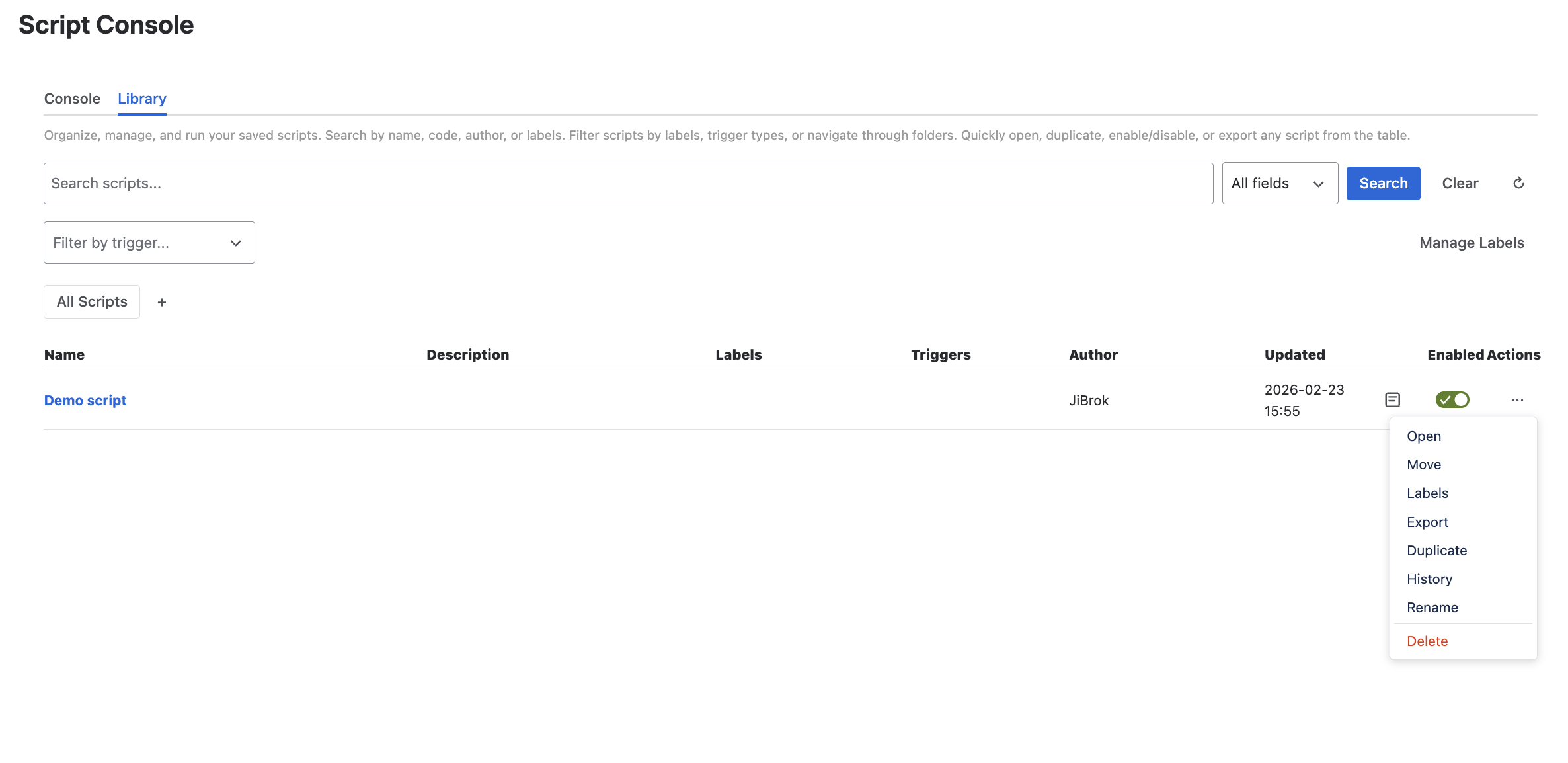 - By trigger type - show only scripts with specific triggers