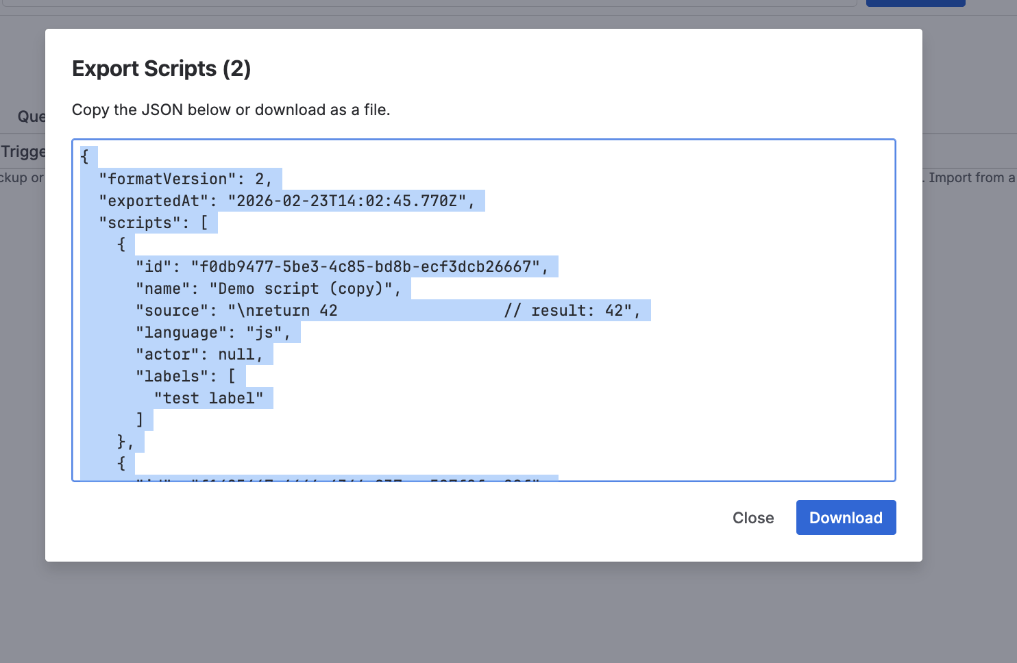 | Export | Export as JSON |