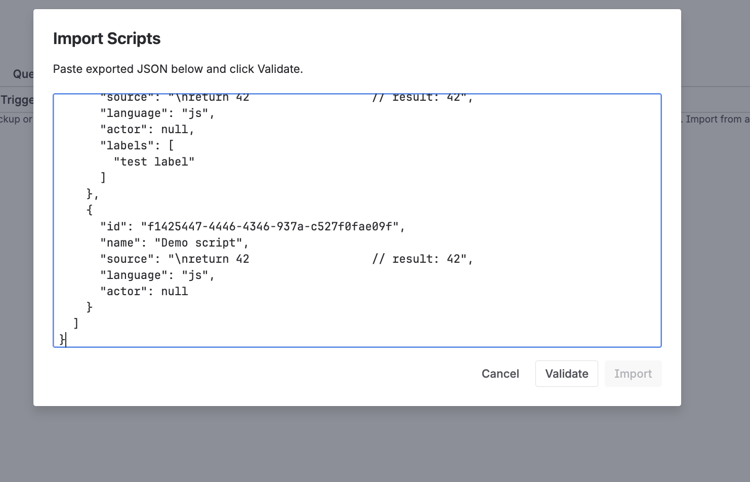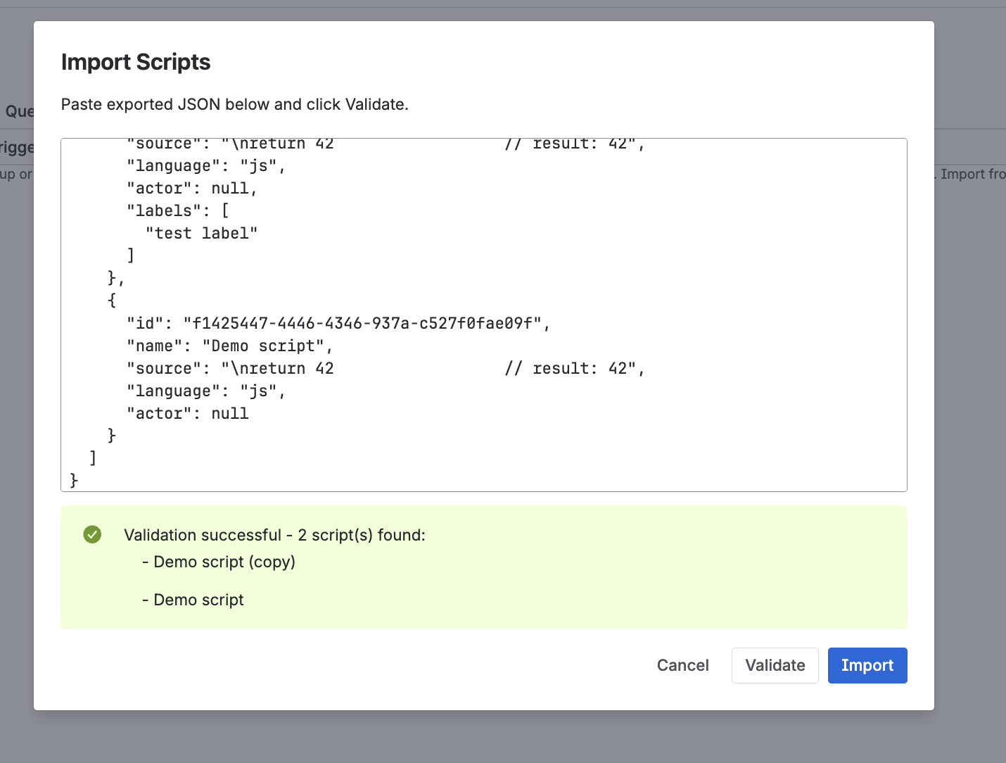 Label names are normalized to lowercase. Deleting a label removes it from all scripts.